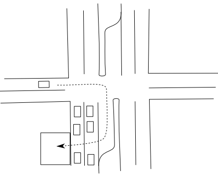 交差する道路の左から車が来て、右折するのかと思いきや、中央分離帯の手前で曲がり、こちらの道路の右折レーンに進入してきました。つまり逆走状態です。